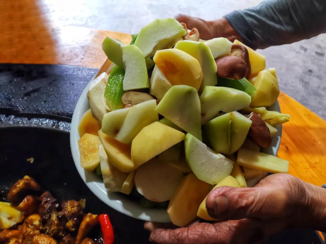 山頂有喂養(yǎng)的土雞,難得上山一次當然要享用這里的柴火雞;