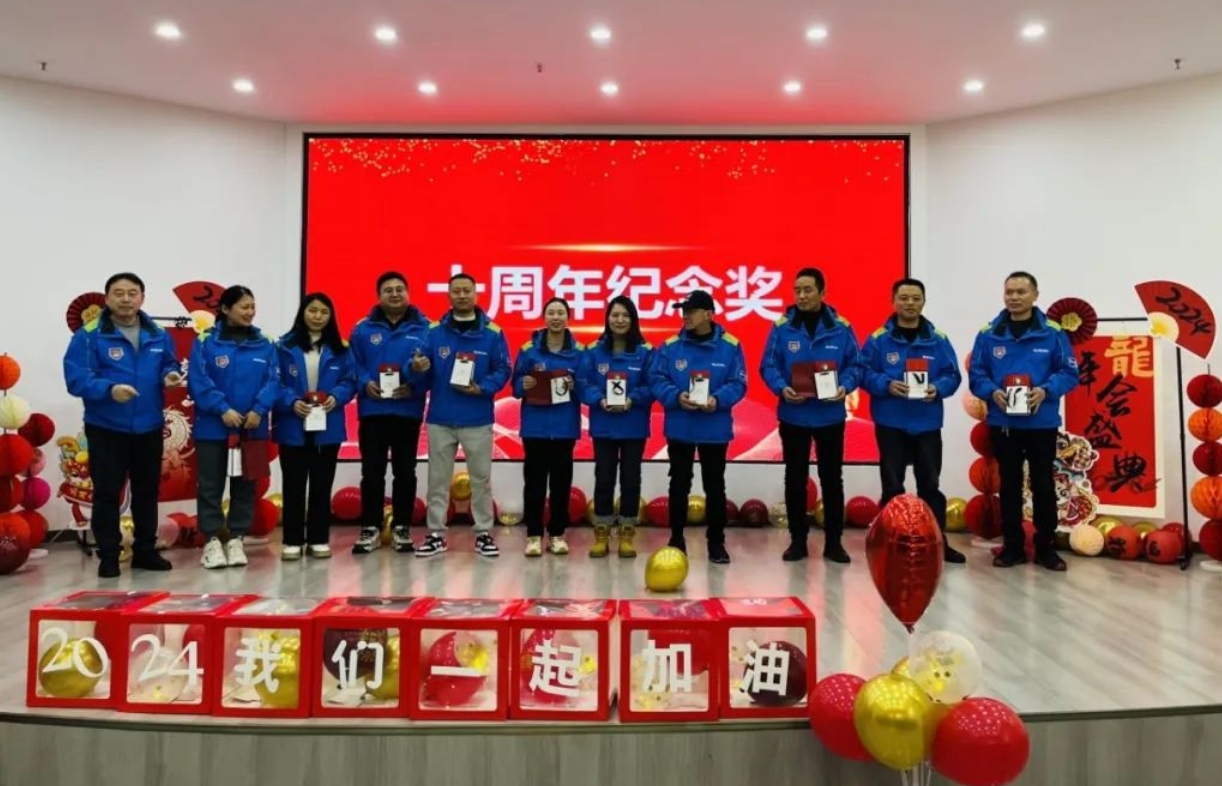 行政部蔣麗娟女士公布了2024年公司企業(yè)文化建設(shè)的各項(xiàng)內(nèi)容及規(guī)劃。 最后,總經(jīng)理鐘銳先生總結(jié)致辭: 不管市場(chǎng)如何變化,我們要保持積極向上的心態(tài),把自身工作干好,干牢。精耕細(xì)作每個(gè)市場(chǎng),每項(xiàng)工作! 回首2023年,我們風(fēng)雨兼程,披荊斬棘,用汗水和淚水換來了今天的成長,相信在總經(jīng)理鐘總的帶領(lǐng)下,我們公司將會(huì)走向更高的臺(tái)階。 接下來,是年終頒獎(jiǎng)典禮。 今年是我們公司成立的第20周年,時(shí)光共悅,感恩同行,有幸相遇,并肩作戰(zhàn)。 陪伴是最長情的告白,我們風(fēng)雨同舟,共同見證公司的成長壯大,恰是風(fēng)華正茂,未來仍需風(fēng)雨兼程!
