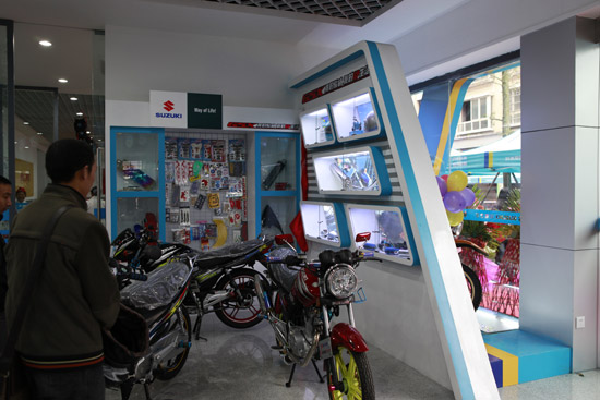 10月24日,四川省首家鈴木文化店南充恒健實(shí)業(yè)有限公司在位于南充市嘉陵區(qū)耀目路的汽摩市場(chǎng)隆重開(kāi)業(yè)。該文化店的開(kāi)業(yè),標(biāo)準(zhǔn)著鈴木品牌在四川市場(chǎng)的推廣邁入了新的里程碑,此次文化店開(kāi)業(yè)展示以鈴木賽車GP藍(lán)為主色調(diào),內(nèi)容豐富,本著實(shí)用,簡(jiǎn)潔的設(shè)計(jì)深受鈴木用戶的喜愛(ài)。