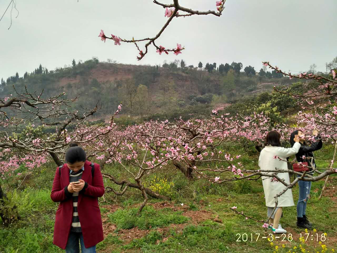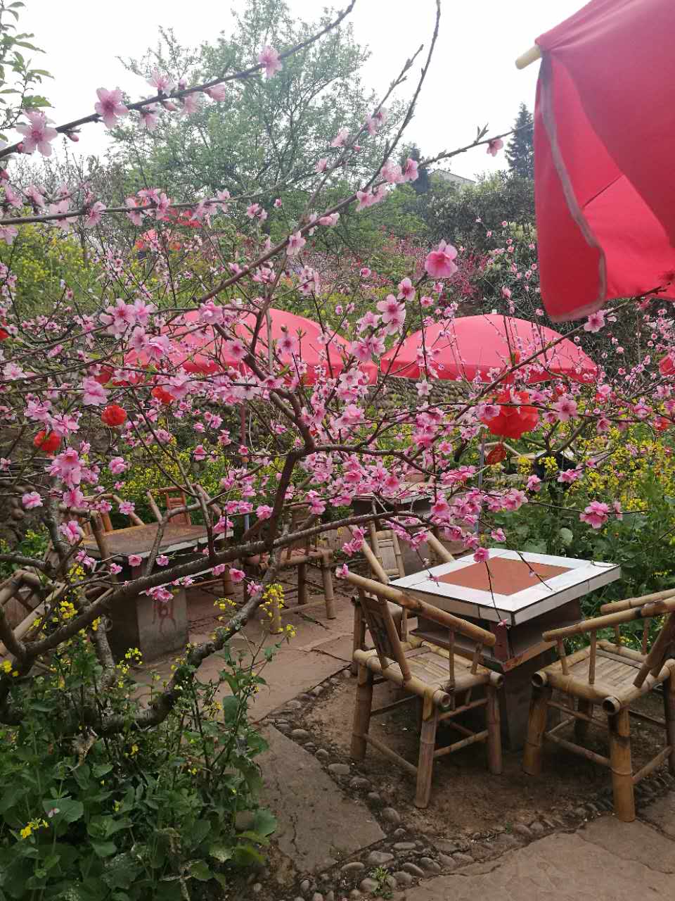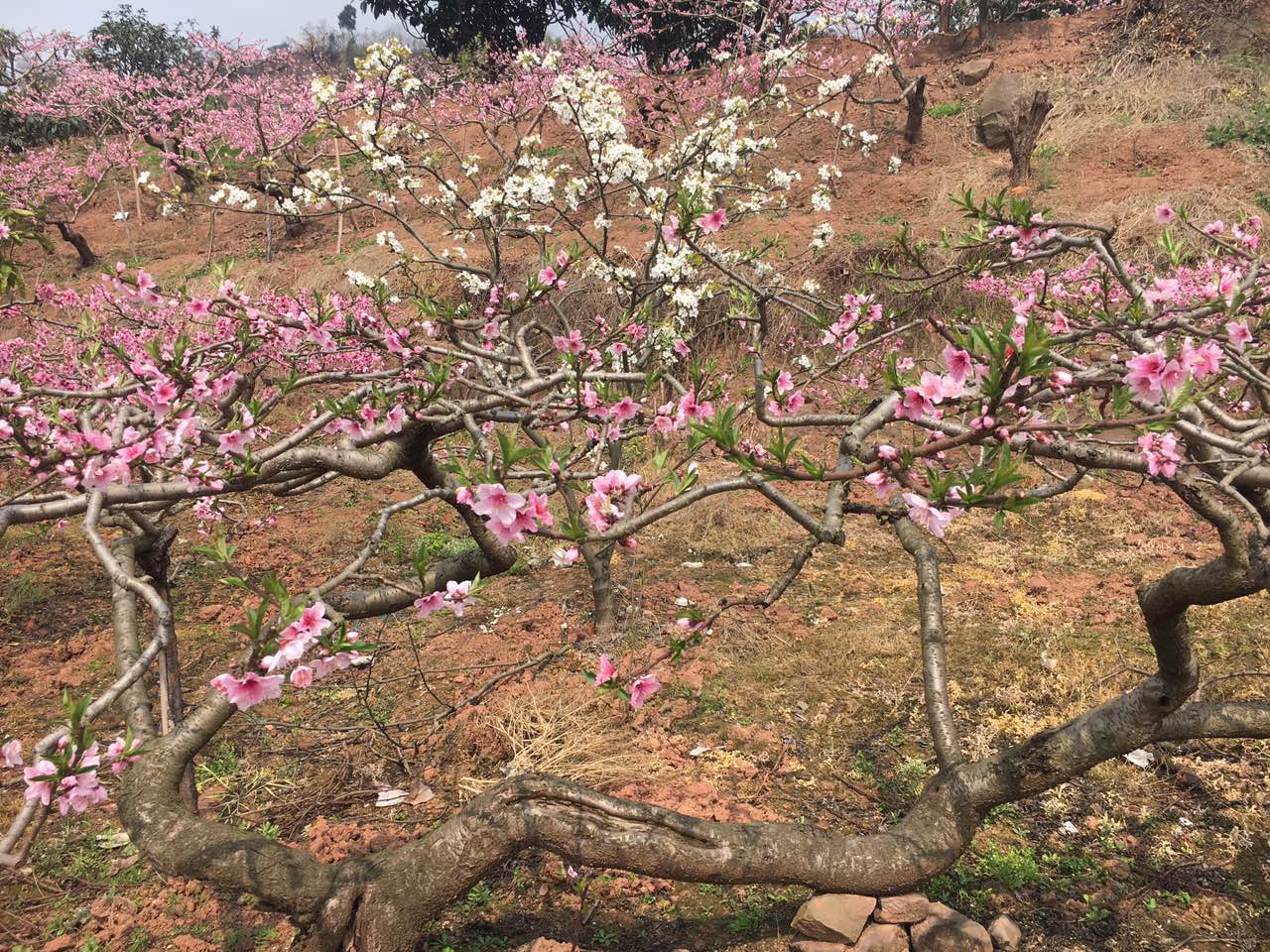 從遠處看,一株株桃樹活像一個個張開的大花傘。