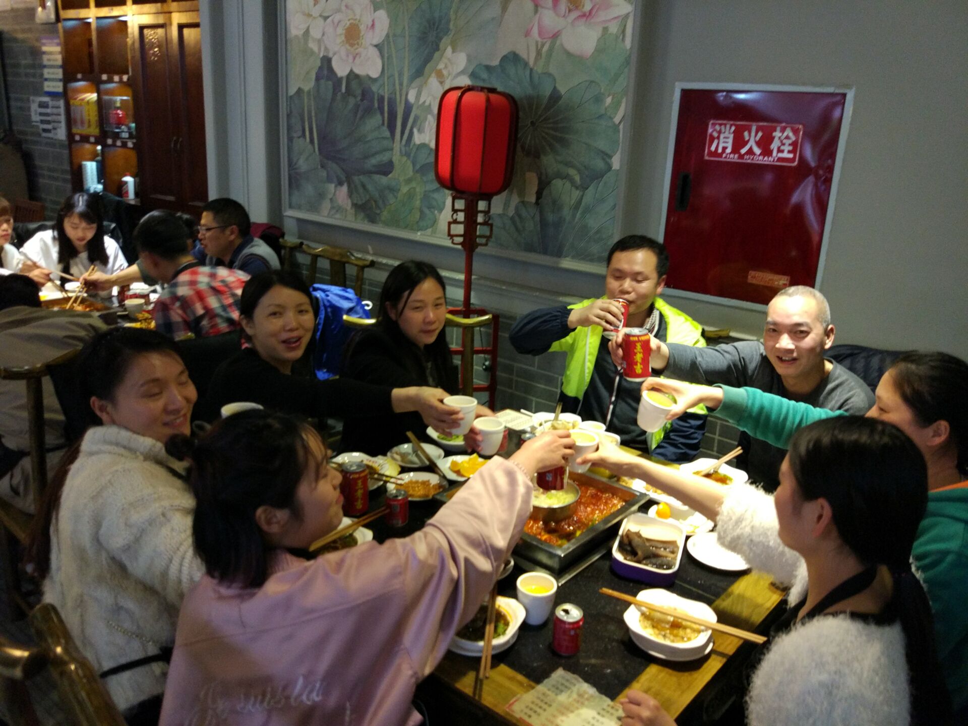 晚上,在大家還未褪去賞花愜意的夾縫中來到了一家火鍋?曜悠呱习讼,嘴巴蠕動,談天說地,其樂融融。要的就是這種美味,要的就是這種氛圍。